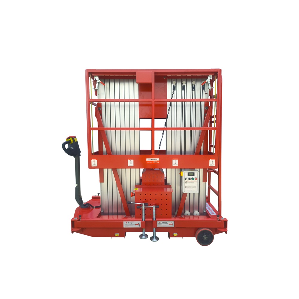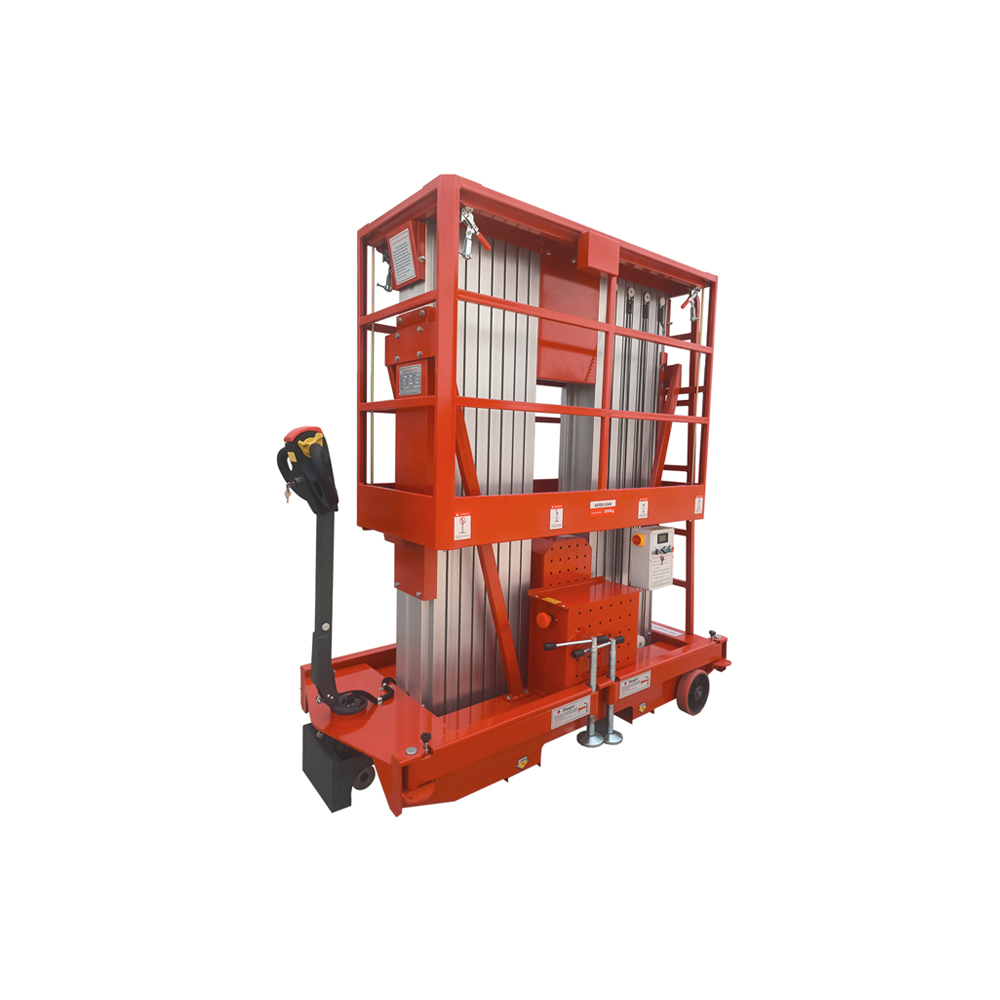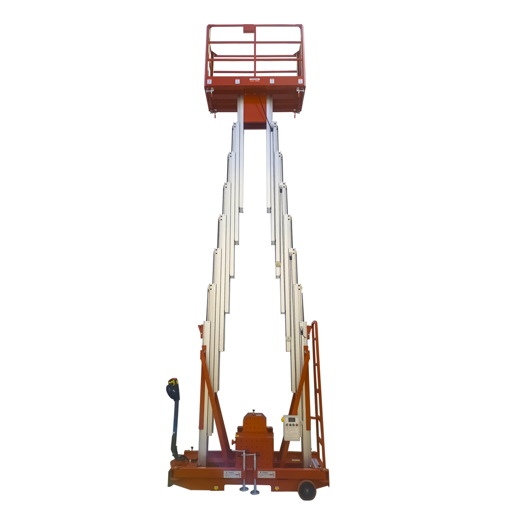 منصة العمل ذات الصاري المزدوج المصنوعة من الألومنيوم من تشين ليفتصُممت هذه الرافعة لرفع العامل مع الأدوات اللازمة إلى ارتفاعات عمل تصل إلى 12 مترًا. يوفر التصميم الفريد لعمود الرفع ثباتًا ممتازًا، مما يجعل العمليات أكثر أمانًا وسهولة. يتوفر خيار الطاقة الكهربائية المترددة أو المستمرة.